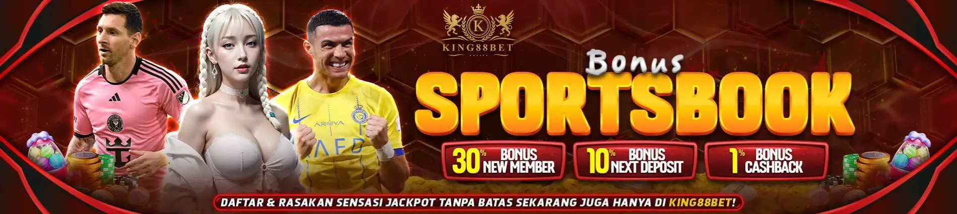 Game King88Bet memberikan bonus besar bagi member yang menjadi member dengan King88bet Login Alternatif , tentunya member dapat menikmati semua penawaran bonus situs Slot indonesia dengan promosi di bawah ini.